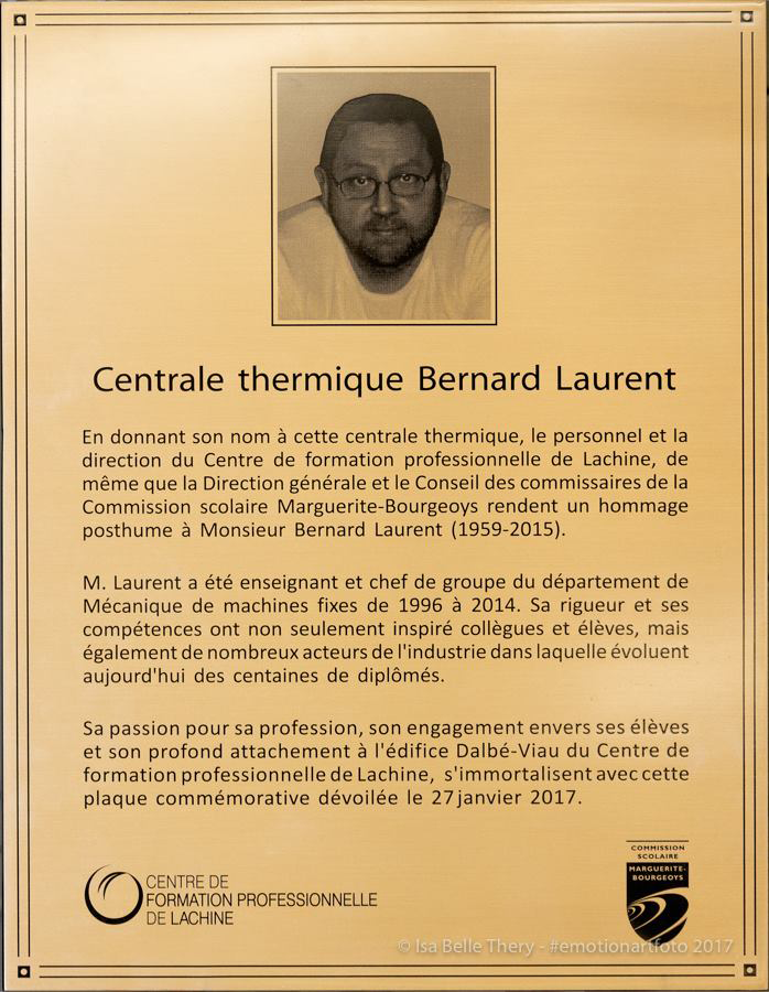 Le CFPLachine a récemment inauguré la centrale thermique Bernard-Laurent en l’honneur du regretté enseignant et chef de groupe du département de Mécanique de machines fixes.